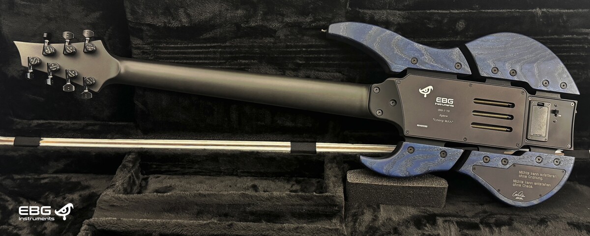 Auf vielfachen Wunsch haben wir unsere Jigsaw-Gitarrenserie nun um eine 7-Saiter-Version erweitert. Dies entspricht im Wesentlichen unserer EBG-6 TR Jigsaw. Zwei der Unterschiede sind die längere Mensur und die 7-Saitige Version. Auch bei diesem Modell ist das Topmodell Lockmeister Tremolo von Schaller verbaut. In Kombination mit unserem CNC-gefrästen Aluminium-Mittelblock ist dies ein Instrument, das unglaublich viel Spaß macht.